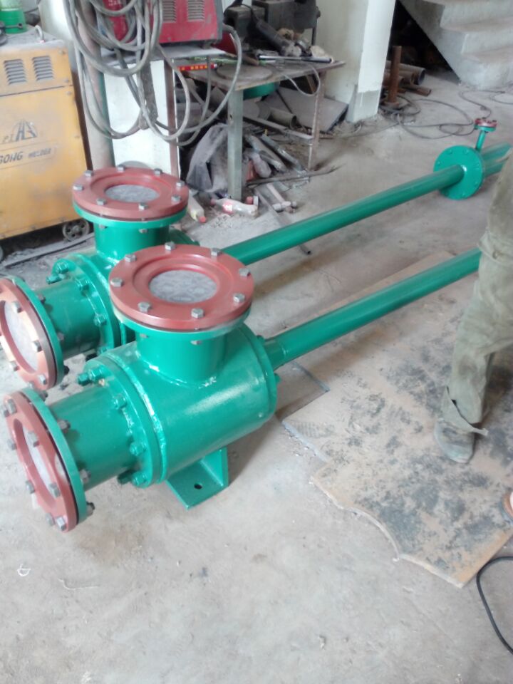 | 連云港運國環保設備有限公司生產的射水抽氣器根據以上原理設計生產形式有單通道結構和多通道結構,射水抽氣器打破了傳統的水、氣垂直交錯流動的設計模式,且不說傳統設計方法不盡合理,在工作機理上也相悖。大家知道氣相運動所需能量全來自水束,那么讓氣體在水質點裹脅下更好運動,就必須:在吸入室中選取水的最佳流速及單股水束的最佳截面,以期水束能實現最佳分散度,同時分散后的水質點又具最佳動量,此時才能以最小的水量裹脅最多的氣體,這是達到低耗高效的起碼條件。吸入室內水質點與空氣的接觸達到最均勻。且使水束所裹脅的氣體能全部壓入喉管。 制止初始段的氣相返流偏流,以免造成沖擊四壁而發生震動磨損。這一點單靠加長喉管是難以實現的。這是吸入室幾何結構,喉口形狀,喉徑噴咀面積比,喉長喉咀徑比,進水參數(水量水壓)等實現的喉管的結構分氣體壓入段,旋渦強化段及增壓段三部份。能實現兩相流的均勻混合,降低氣阻,消除氣相偏流,增加兩相質點能量交換,又能利用余速使排出的能量損失達到最少。